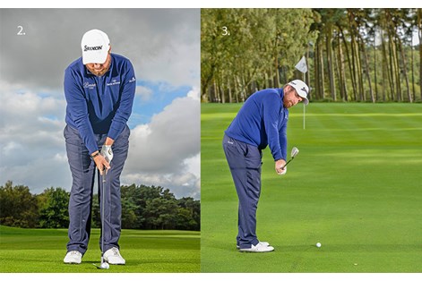 Around the greens I play with a certain degree of wrist action. You need to be able to ‘feel’ the clubhead through your hands. Do this correctly with a light grip and you’ll find the clubhead stays ‘outside’ your hands on the backswing and helps you use the bounce.