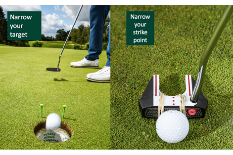 When your task is harder on the practice green, the putt seems easier on the course. Here are two ways to do it.